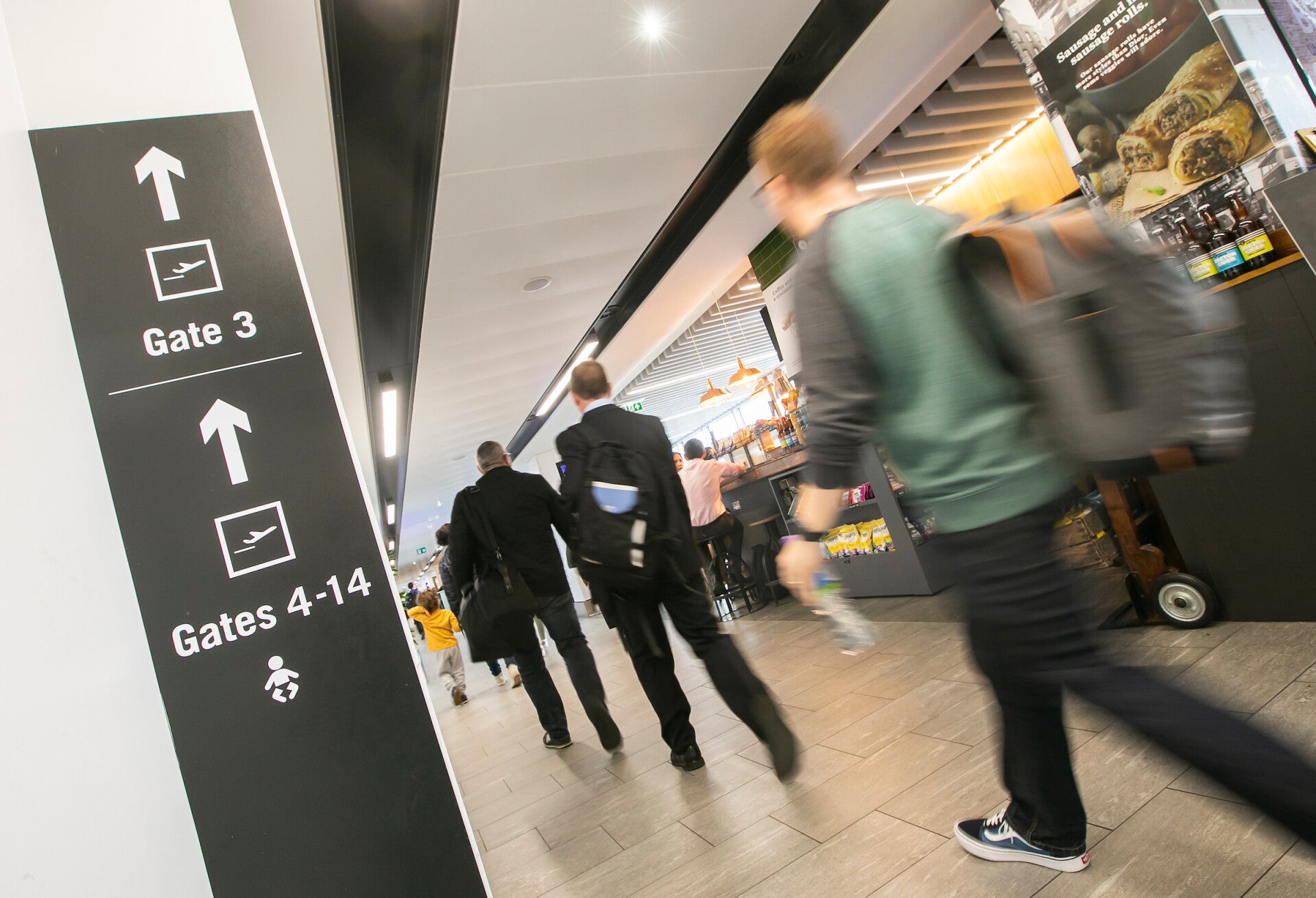 We drop passengers at the designated departure area directly outside the terminal entrance.